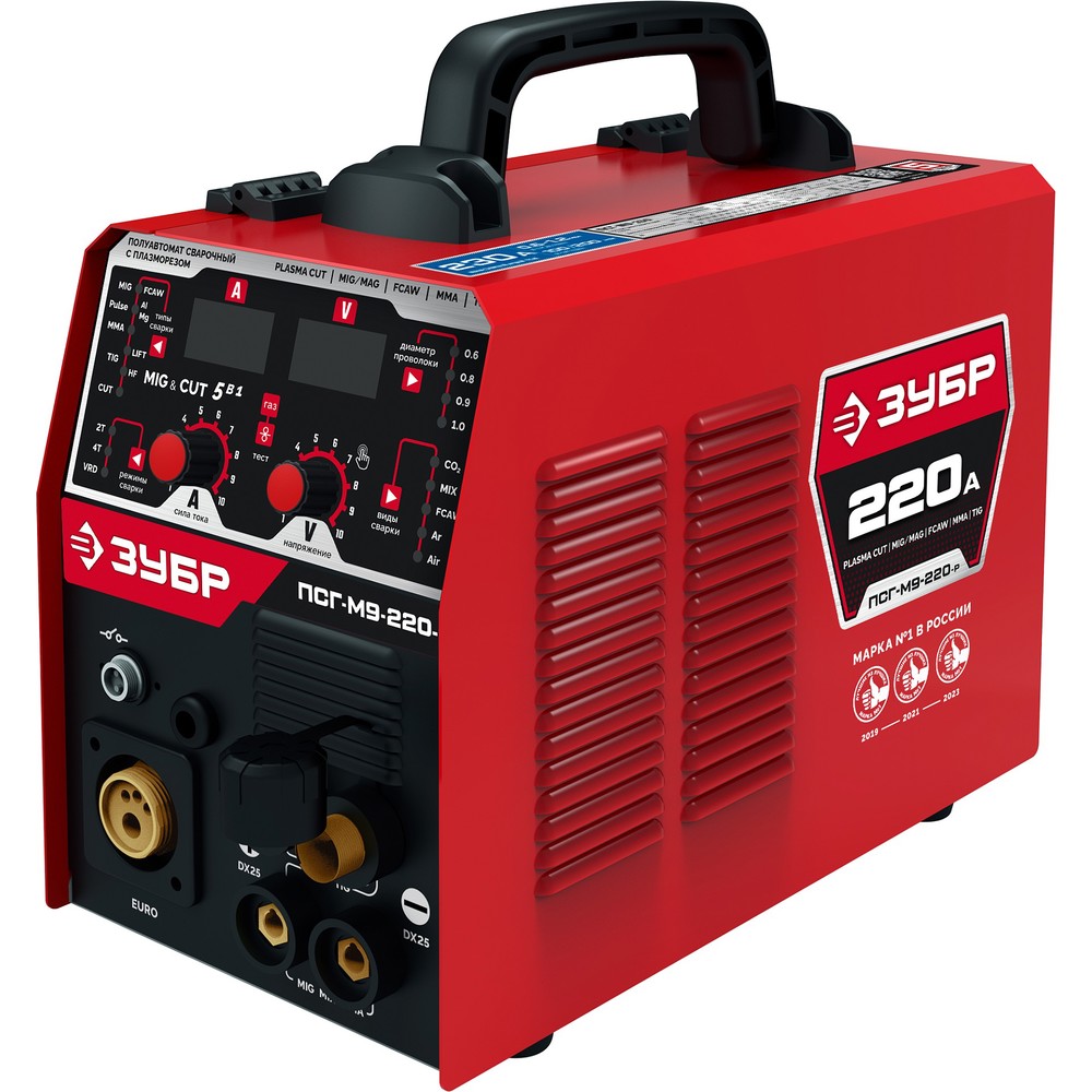 ЗУБР MIG & CUT 5-в-1, MIG / MAG, PLASMA CUT, FCAW, MMA, TIG, 220 А, полуавтомат сварочный, с газом / без газа, горелка ПСГ-220 (ПСГ-М9-220-Р)