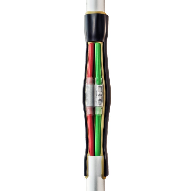 - Муфта имеет два контура герметичности, представленных клеевыми термоусаживаемыми трубками для изоляции контактных соединений (цвет: прозрачный) и общей трубкой восстановления оболочки кабеля (цвет: черный)