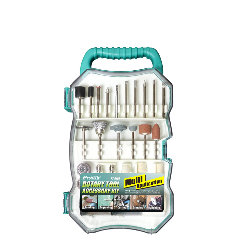 109 pcs complete kit offering the breadth of accessories helpful for wide assortment of tasks.
