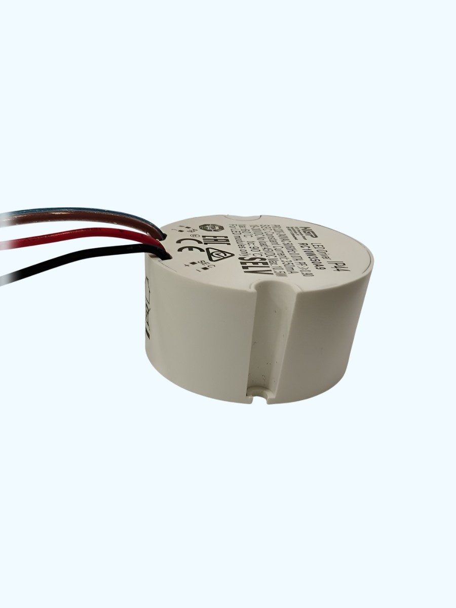 AC-DC LED драйвер, 10Вт, IP44, вход 198…264 В AC/220…280 В DC, 47…63Гц, выход 19…30 В/0,35, изоляция 3750 В,корпус круглый пластиковый, Ф42,5x22,5мм, 5 лет гарантия, -20...60°С