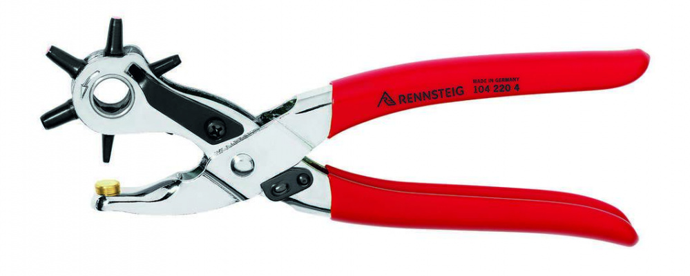 Просечные клещи с револьверной головкой, никелированные, ручки с чехлами, сменные пробойники (диаметр 2,0; 2,5; 3,0; 3,5; 4,0; 4,5), для получения отверстий в бумаге, коже, тканях, пластмассе. Сделано в Германии.