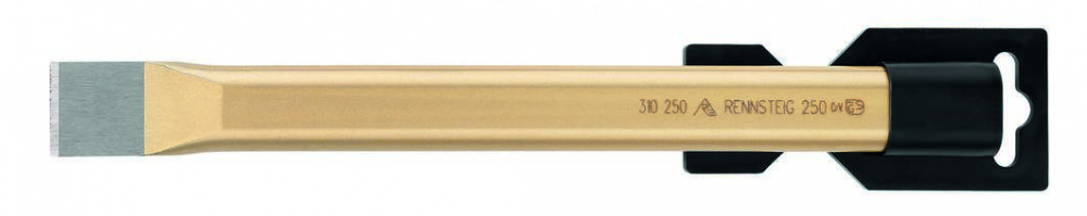 Зубило плоское 350 мм, без протектора, плоско-овальный профиль 23x13 мм, ширина резца 27 мм, сколы и расплющивание исключаются благодаря безопасной ударной головке, за счёт специального метода изготовления не образуются микротрещины, большой срок службы, специальная инструментальная сталь кованая, закалённая и окрашенная, резец обработан, рабочий наконечник полированный, полная закалка, зубило непосредственно передаёт силу удара, подточка возможна по всей длине, параметры превышают требования стандарта, с еврокреплением для продаж в системе самообслуживания. Сделано в Германии.