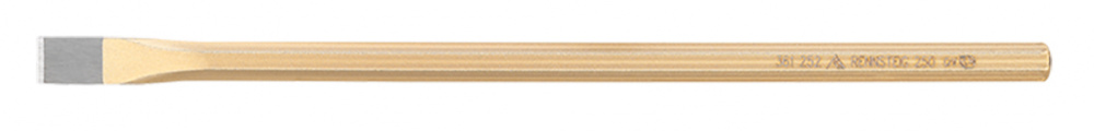 Зубило электрика 300 мм, без протектора, восьмигранный профиль 12 мм, ширина резца 14 мм, сколы и расплющивание исключаются благодаря безопасной ударной головке, за счёт специального метода изготовления не образуются микротрещины, большой срок службы, специальная инструментальная сталь кованая, закалённая и окрашенная, резец обработан, рабочий наконечник полированный, полная закалка, зубило непосредственно передаёт силу удара, подточка возможна по всей длине, параметры превышают требования стандарта. Сделано в Германии.