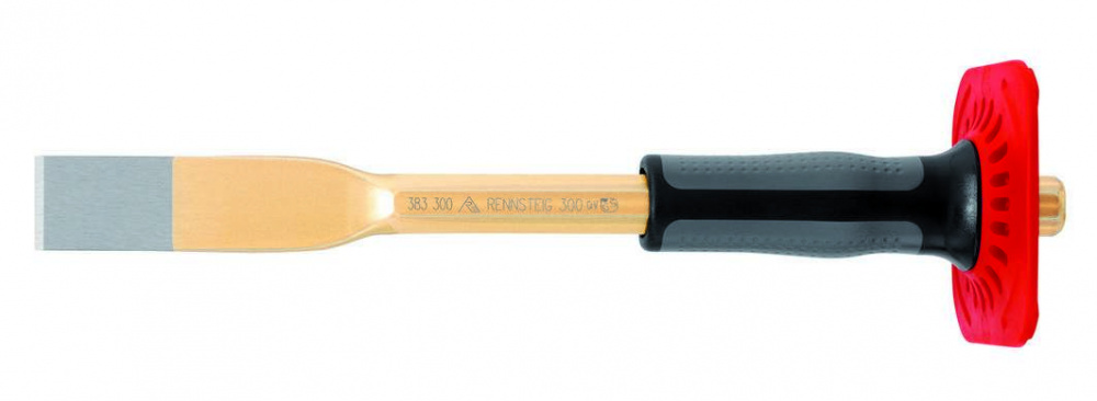 Зубило пазовое 300 мм, с протектором, восьмигранный профиль 18 мм, ширина резца 30 мм, сколы и расплющивание исключаются благодаря безопасной ударной головке, за счёт специального метода изготовления не образуются микротрещины, большой срок службы, специальная инструментальная сталь кованая, закалённая и окрашенная, резец обработан, рабочий наконечник окрашенный, полная закалка, зубило непосредственно передаёт силу удара, подточка возможна по всей длине, параметры превышают требования стандарта. Сделано в Германии.