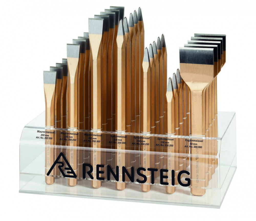Полный ассортимент ударных инструментов на Rennsteig дисплей для презентации 429 101, содержимое: 5x330 200 0, 5x330 250 0, 5x330 300 0, 5x350 200 0, 5x350 250 0, 5x350 300 0 и 5x385 060 0. Сделано в Германии.