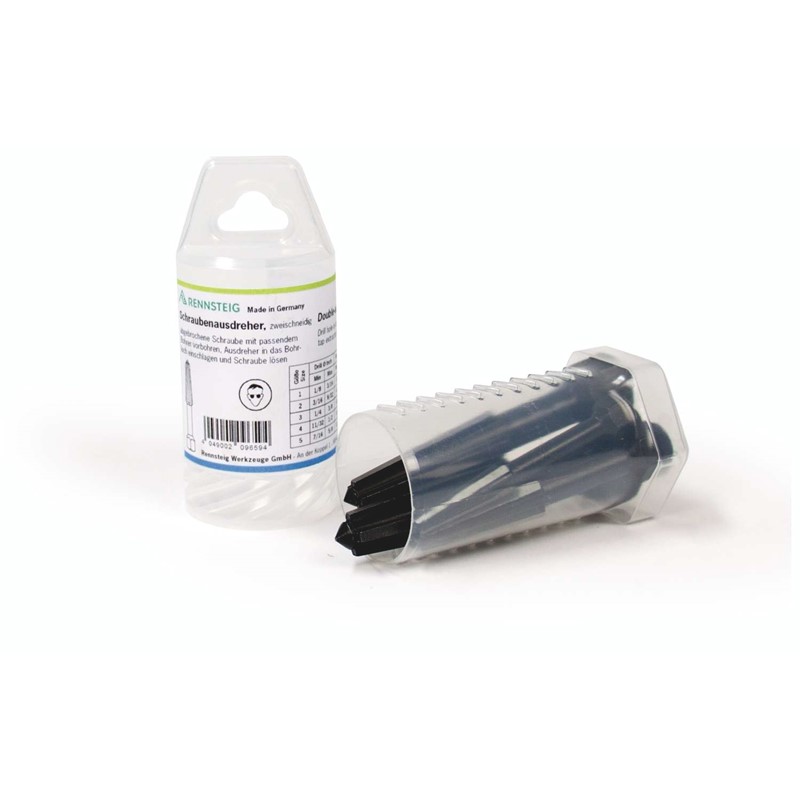 Набор экстракторов с двойной режущей кромкой, 5 пр., #1/2/3/4/5, M5 - M20, пластиковый цилиндрический кейс, для левой и правой резьб