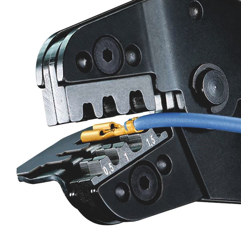 PEW 8.40 Пресс-клещи + локатор, Неизолированный плоский соединитель, 0.25 – 0.5 / 0.75 – 1.0 / 1.5 мм², 3 гнезда