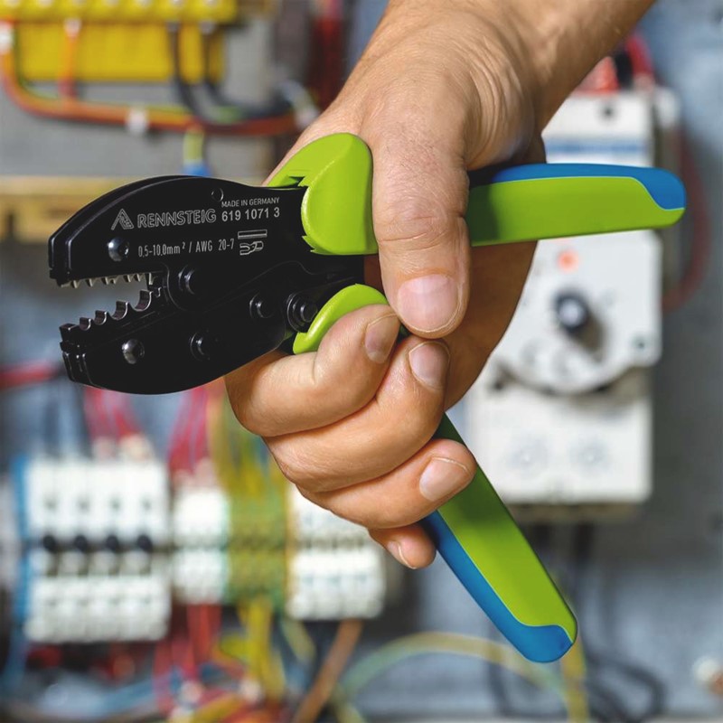 PEW 9.1071 Пресс-клещи, Стыковой и неизолированный соединители DIN 46267, 0.5 – 1.5 / 1.5 – 2.5 / 4.0 – 6.0 / 6.0 – 10.0 мм², 4 гнезда