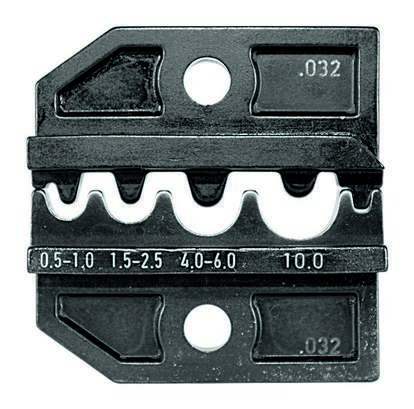 Опрессовочная плашка под неизолированный соединитель по стандарту DIN 46234, 46235 и 46267 0,5-1,0 мм², 1,5-2,5 мм², 4,0-6,0 мм² и 10,0 мм², шиповидный обжим. Сделано в Германии.