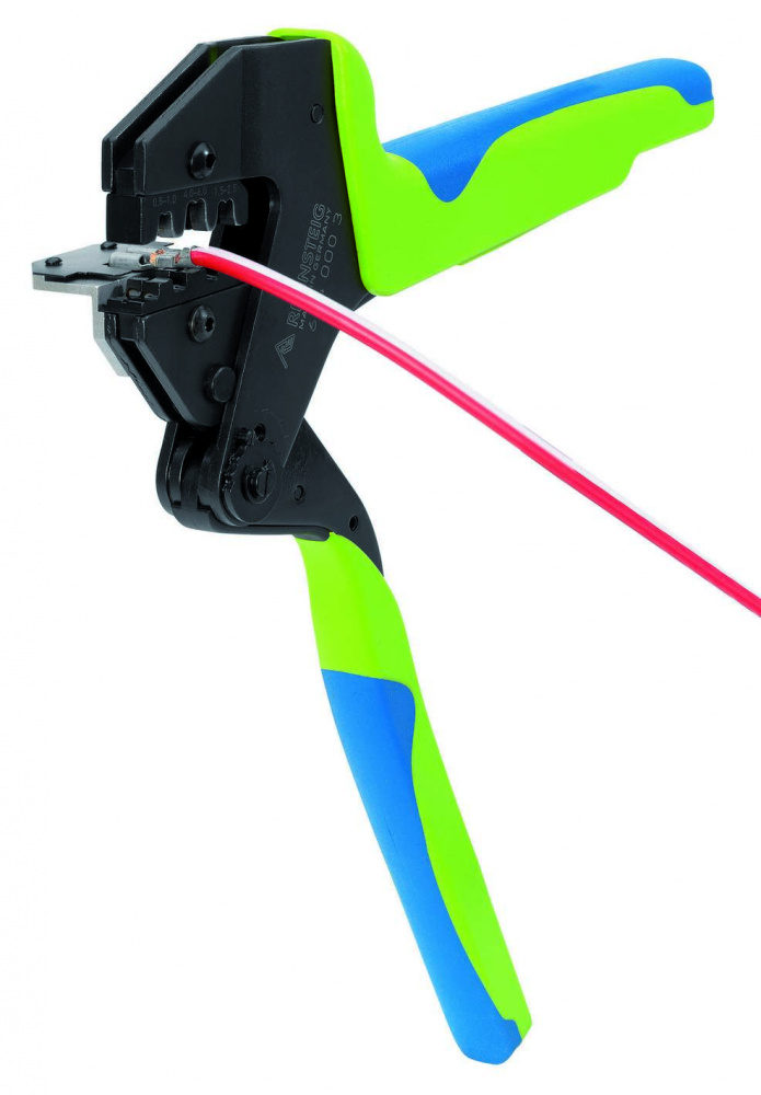 Многосистемные пресс-клещи PEW 12, специальный инструмент для опрессовки почти всех известных соединителей с проводником сечением 0,08-50 мм², обеспечивают надёжное электрическое соединение без пайки, параллельное движение губок, благодаря оптимальному действию рычагов требуются незначительные мышечные усилия, удобная работа благодаря отбалансированности инструмента, возможность работы одной рукой и двумя руками, много вариантов комбинирования сменных опрессовочных плашек и приёмников для контактов, регулировка усилия опрессовки, принудительная блокировка (с разблокировкой) для надёжной опрессовки, эргономичные и нескользящие 2К ручки, незначительное раскрытие ручек, опрессовочная плашка и приёмник для контактов под плоский штекер по стандарту DIN 46247, 46345 и 46 346 0,5-1,0 мм², 1,5-2,5 мм² и 4,0-6,0 мм², F-образная опрессовка, приёмник для точного размещения контактов. Сделано в Германии.