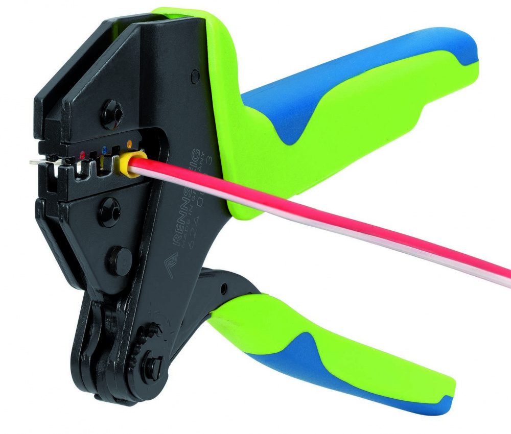 Многосистемные пресс-клещи PEW 12, специальный инструмент для опрессовки почти всех известных соединителей с проводником сечением 0,08-50 мм², обеспечивают надёжное электрическое соединение без пайки, параллельное движение губок, благодаря оптимальному действию рычагов требуются незначительные мышечные усилия, удобная работа благодаря отбалансированности инструмента, возможность работы одной рукой и двумя руками, много вариантов комбинирования сменных опрессовочных плашек и приёмников для контактов, регулировка усилия опрессовки, принудительная блокировка (с разблокировкой) для надёжной опрессовки, эргономичные и нескользящие 2К ручки, незначительное раскрытие ручек, опрессовочная плашка и приёмник для контактов под изолированный соединитель по стандарту DIN 46237 0,5-1,0 мм², 1,5-2,5 мм² и 4,0-6,0 мм², овальная опрессовка, приёмник для точного размещения контактов. Сделано в Германии.