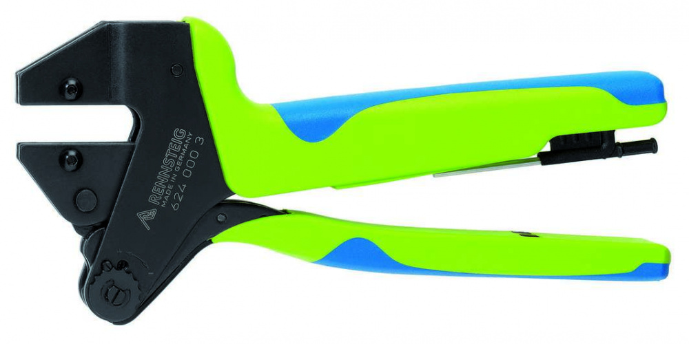 Многосистемные пресс-клещи PEW 12, специальный инструмент для опрессовки почти всех известных соединителей с проводником сечением 0,08-50 мм², обеспечивают надёжное электрическое соединение без пайки, параллельное движение губок, благодаря оптимальному действию рычагов требуются незначительные мышечные усилия, удобная работа благодаря отбалансированности инструмента, возможность работы одной рукой и двумя руками, много вариантов комбинирования сменных опрессовочных плашек и приёмников для контактов, регулировка усилия опрессовки, принудительная блокировка (с разблокировкой) для надёжной опрессовки, эргономичные и нескользящие 2К ручки, незначительное раскрытие ручек, опрессовочная плашка под двужильные контактные гильзы 2x6,0 мм², 2x10,0 мм² и 2x16,0 мм², трапециевидная опрессовка. Сделано в Германии.