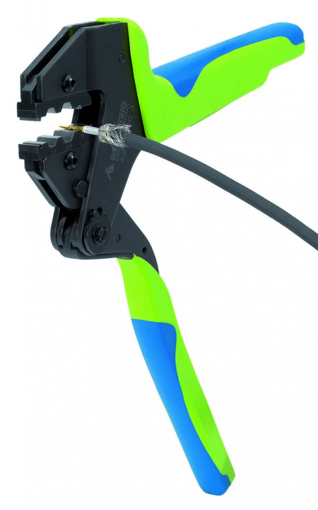Многосистемные пресс-клещи PEW 12, специальный инструмент для опрессовки почти всех известных соединителей с проводником сечением 0,08-50 мм², обеспечивают надёжное электрическое соединение без пайки, параллельное движение губок, благодаря оптимальному действию рычагов требуются незначительные мышечные усилия, удобная работа благодаря отбалансированности инструмента, возможность работы одной рукой и двумя руками, много вариантов комбинирования сменных опрессовочных плашек и приёмников для контактов, регулировка усилия опрессовки, принудительная блокировка (с разблокировкой) для надёжной опрессовки, эргономичные и нескользящие 2К ручки, незначительное раскрытие ручек, опрессовочная плашка под коаксиальный соединитель sw 5,4, sw 6,48 и sw 1,72, RG 58, RG 59, RG 62 и RG 71, гексагональная опрессовка. Сделано в Германии.
