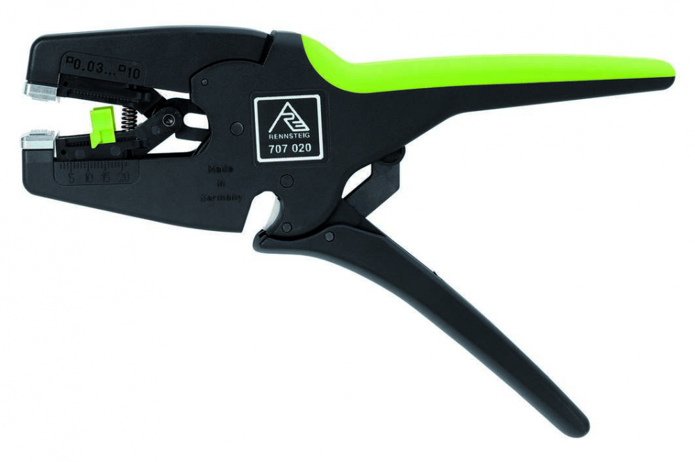 Запатентованный инструмент для удаления изоляции с автоматической настройкой "Multistrip 10", первый инструмент, который самостоятельно настраивается на сечения и толщину изоляции, подходит для однопроволочныйи многопроволочный провод с ПВХ изоляцией и многими видами специальной изоляции, встроенный резак для провода