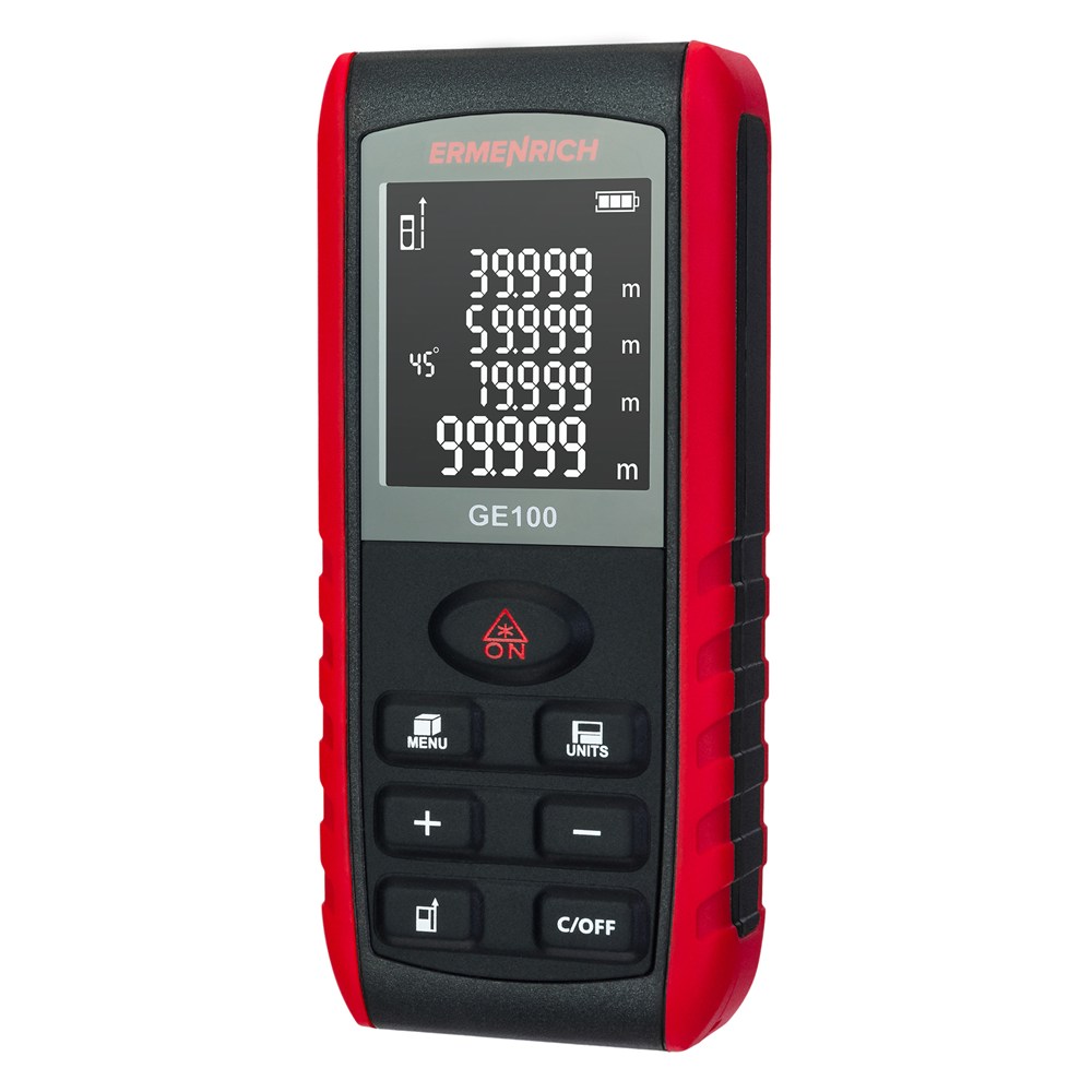 Многофункциональная лазерная рулетка Ermenrich Reel PRO GE100 значительно сэкономит время при определении расстояний, углов, площади и объема. С ней можно делать разовый замер, непрерывное сканирование лучом, а также вычислить искомый параметр по двум косвенным величинам благодаря алгоритму «Пифагор». Последнее особенно важно, когда на пути луча есть препятствия. Сравнивая эту модель с лазерной рулеткой Ermenrich Reel PRO GE40, стоит отметить максимальную дальность измерений – здесь она составляет 100 метров, что в 2,5 раза больше, чем у GE40.