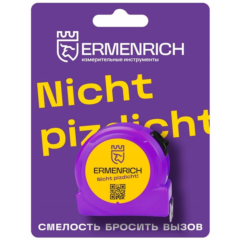Корпус Ermenrich Reel SB30 изготовлен из прочного ABS-пластика, а измерительная лента – из матовой стали с белым покрытием. На конце ленты расположен зацеп, позволяющий производить измерения крупногабаритных объектов без посторонней помощи. Рулетка выполнена в обновленных фирменных цветах бренда, которые трудно не заметить – роскошном фиолетовом и жизнерадостном желтом. Длина полотна – 3 метра, ширина — 16 миллиметров; это делает инструмент компактным, легким, идеальным для использования в быту.