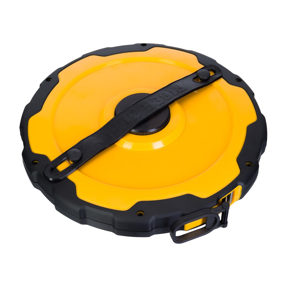 Мерная лента сделана из износостойкого и устойчивого к растяжению стекловолокна, корпус – из высокопрочного ABS-пластика. Это делает рулетку очень неприхотливой к условиям эксплуатации, обеспечивает ее надежную и долговечную работу. Для скручивания ленты используется боковая катушечная ручка – ее механизм тоже отлично продуман, чтобы работать безотказно. При необходимости ручку можно сложить. Корпус дополнен эргономичным удерживателем из термопластичной резины (TPR).