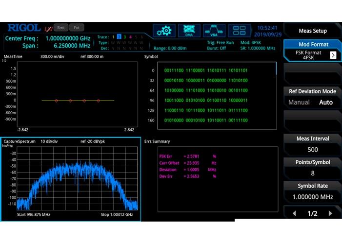 - Возможность анализа цифровых кодированных сигналов позволяет работать с такими видами модуляции: ASK (2ASK, 4ASK), FSK (2FSK, 4FSK, 8FSK);