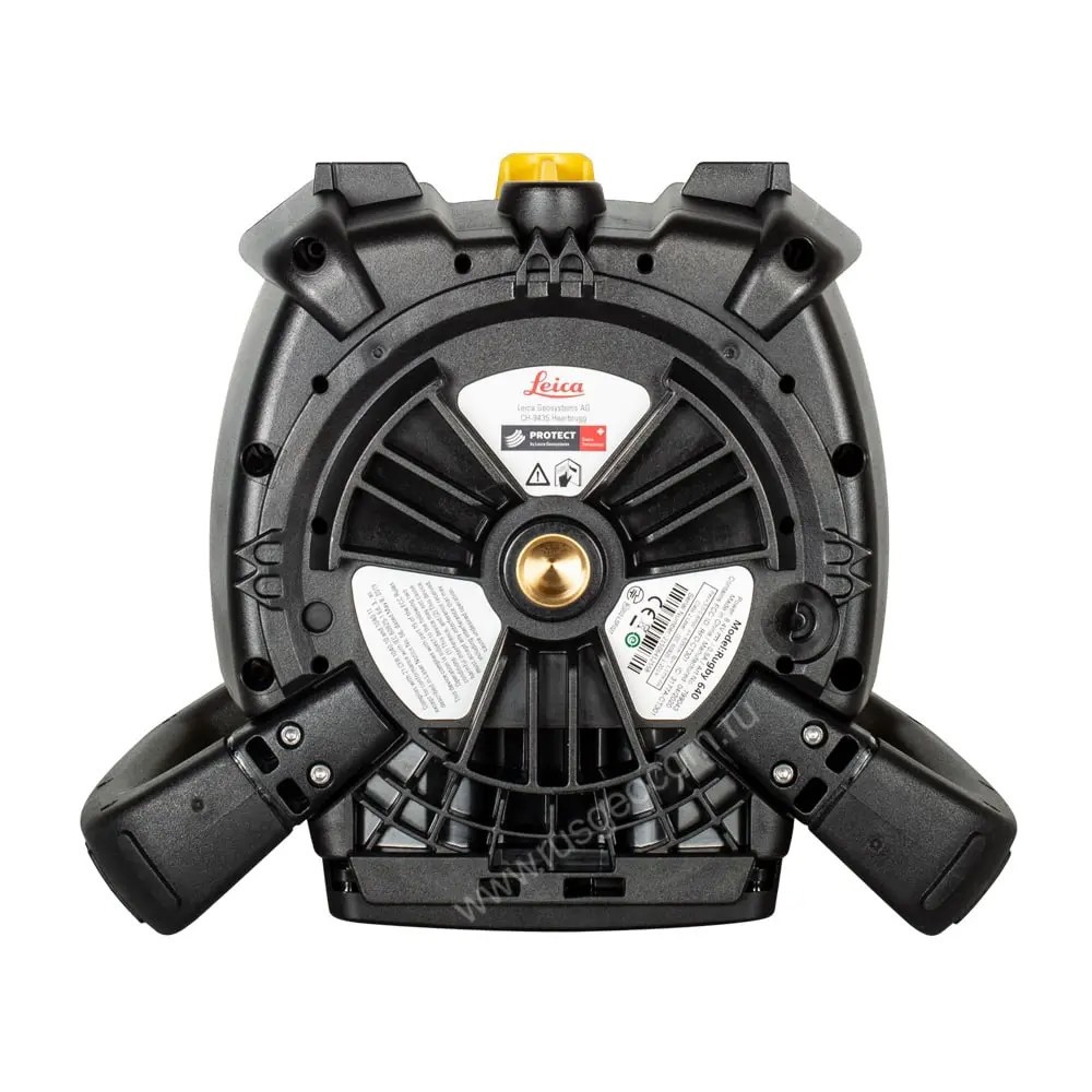 Кроме традиционного режима проекции горизонтальной лазерной плоскости, относительно которой выполняются измерения или разметка, ротационный нивелир Leica Rugby 640 также используется и для построения вертикали. Система самовыравнивания данного прибора способна работать в двух положениях, а на корпусе нивелира имеются два крепежных узла — внизу и сбоку, для крепления его на штативе.