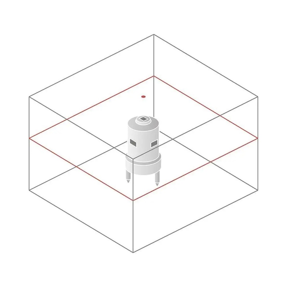 Помимо лазерной плоскости, Leica Rugby 640 генерирует перпендикулярный луч в зенит. С его помощью осуществляется проверка и откладывание прямых углов, перенос точек и т.п.