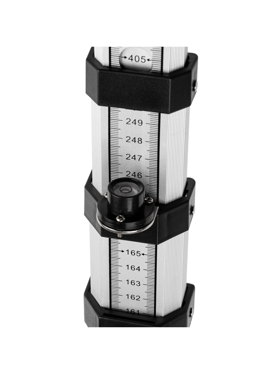 - Мобильность – При значительной длине в рабочем положении, позволяющей выполнять измерения превышений при больших перепадах высот, в сложенном состоянии модель занимает мало места, легко помещаясь в багажнике.