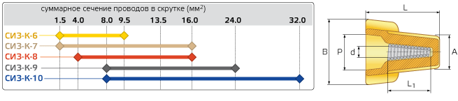 - Благодаря специальному квадратному профилю, пружина создает свою резьбу на скрутке и надежно удерживает соединенные провода