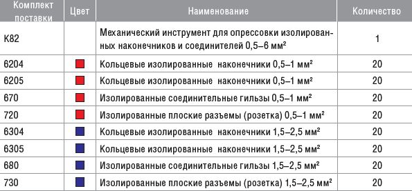 Набор изолированных наконечников и соединителей в пластиковом боксе 0,5–2,5 мм с инструментом для опрессовки K 82.