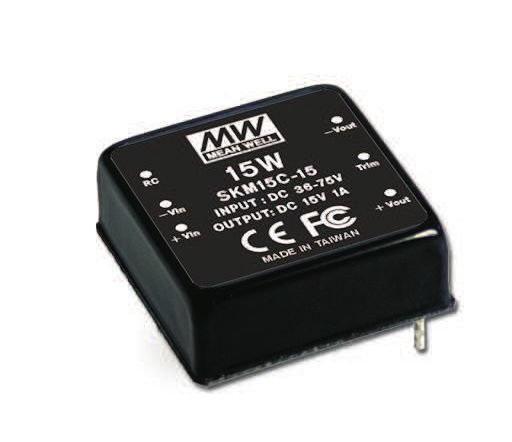 DC-DC, 15Вт, Uвх=36…75B, Uвых=12В/0.125…1.25А, рег. вых=±10%Uном, вход дист. управл., изоляция 1500В DC, в корпусе 25.4х25.4х10мм, -40°С…+80°С
