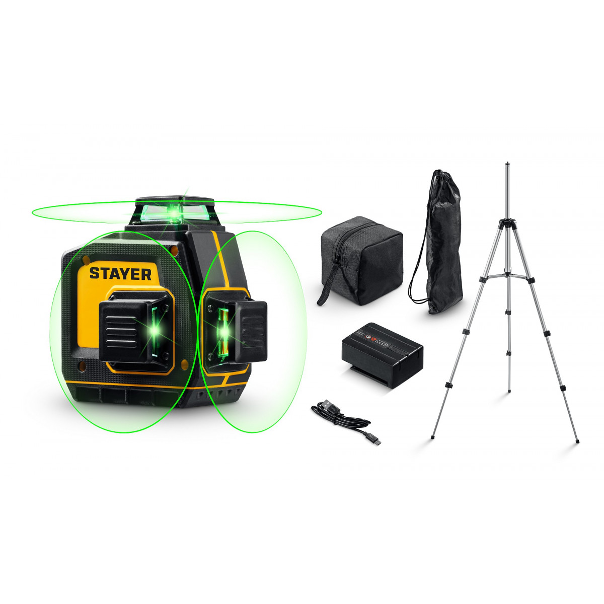 Лазерный нивелир (зеленый луч) STAYER SL-3D #3, 50м, штатив (34963-3)