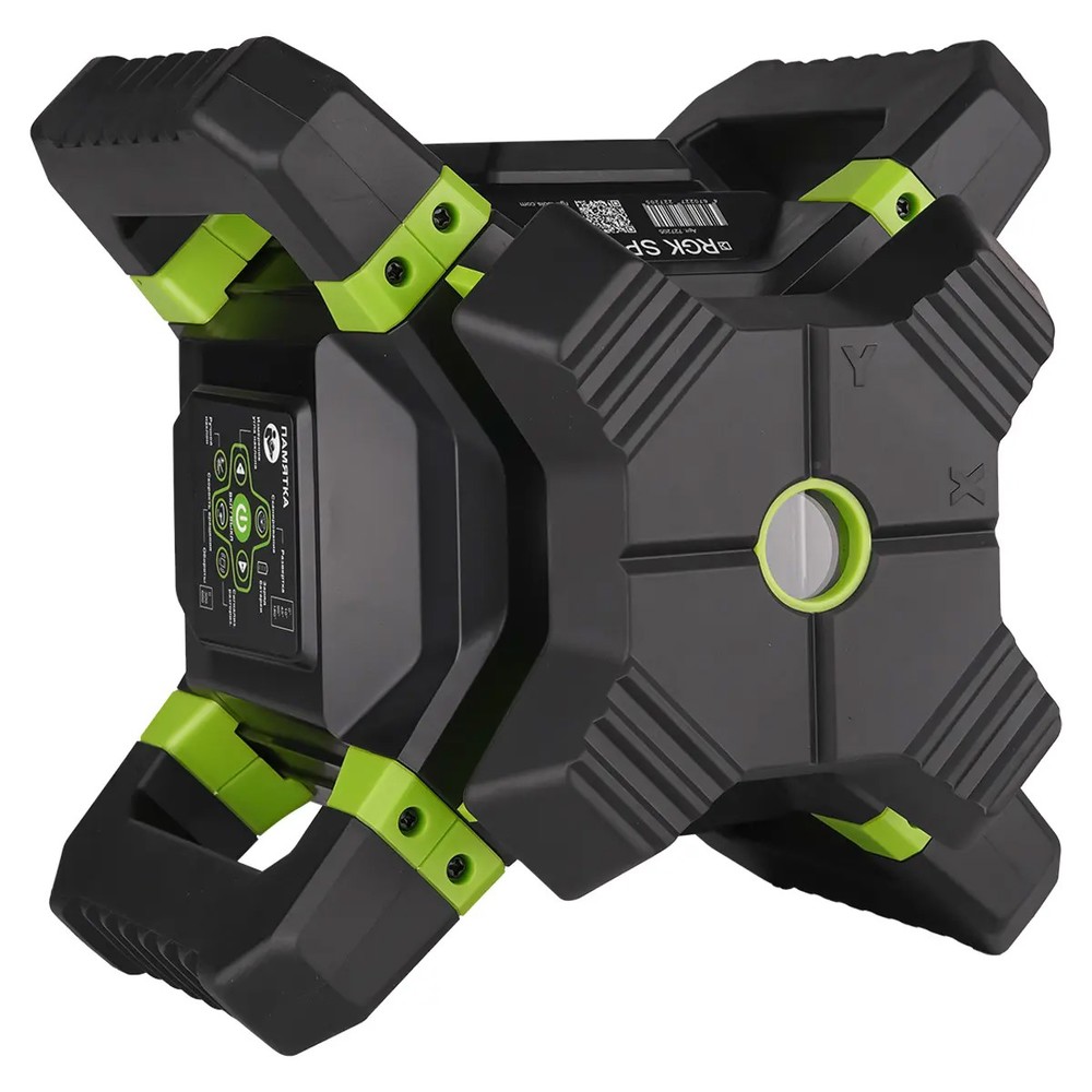 Для недопущения повреждения лазерной головки в процессе эксплуатации ротационный нивелир RGK SP-312G снабжен верхней крышкой, усиленной ребрами жесткости. 4 крупноразмерные ручки, позволяющие удобно переносить и устанавливать прибор, выполняют роль дополнительной защиты от механических воздействий. Благодаря параллельной конструкции они могут применяться как опора при использовании изделия для проецирования вертикальной плоскости, с установкой на грунт или любую поверхность. Также предусмотрена возможность крепления изделия на штативе, для чего на корпусе имеются два перпендикулярных винтовых крепления.