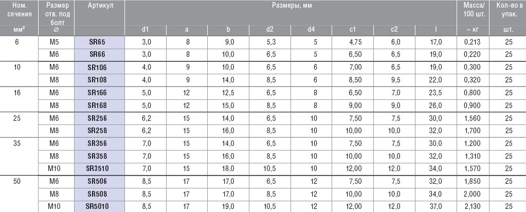 Медные трубчатые кабельные наконечники для сплошных жил, M6 / 50 мм KLAUKE SR506