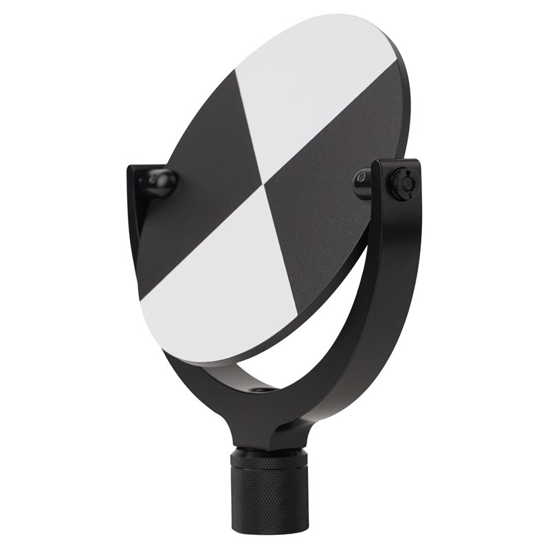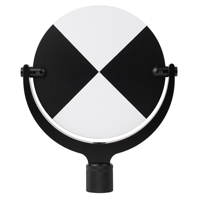 - Увеличенный размер черно-белой мишени позволяет использовать геодезический отражатель при съемке с больших дистанций, размещая ее в зонах перекрытия сканов для минимизации количества съемочных позиций.