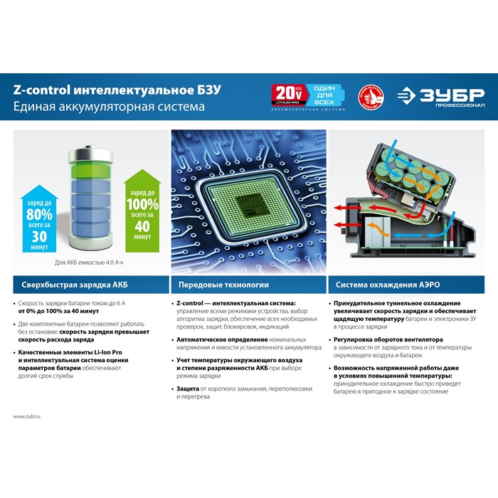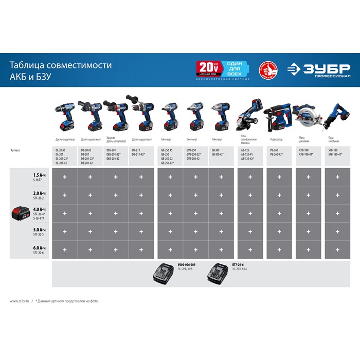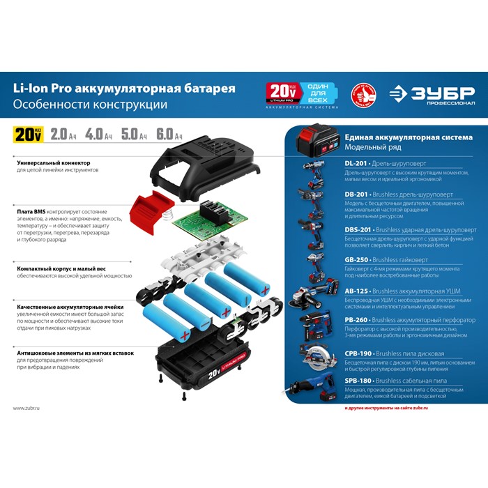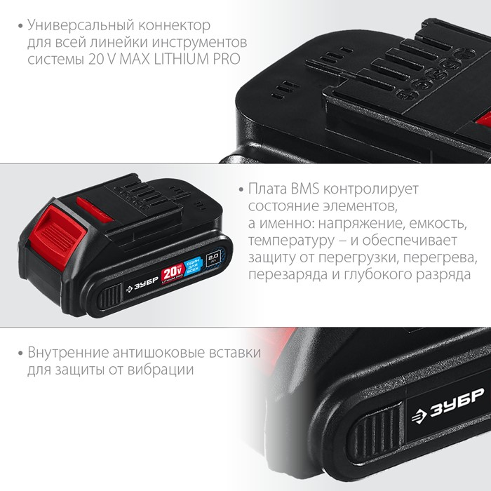 Аккумуляторная батарея Li-Ion, 20 В, 2 Ач, тип T7ST7-20-2 Зубр
