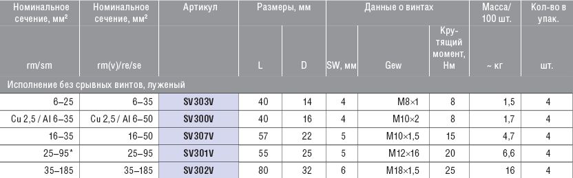 Винтовые соединители, луженые, без срывных винтов, 16–50 мм KLAUKE SV307V