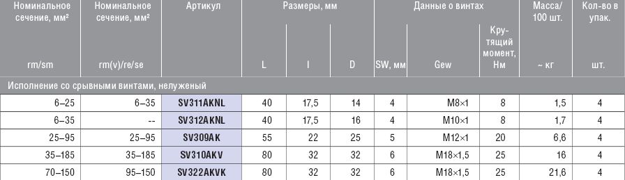 Винтовые соединители с перегородкой, нелуженые, со срывными винтами, 25–95 мм KLAUKE SV309AK