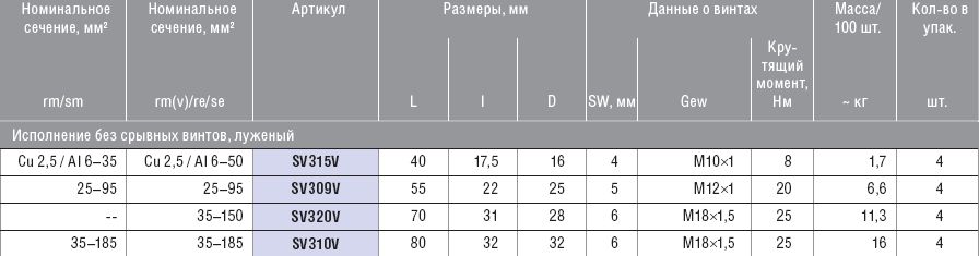 Винтовые соединители с перегородкой, луженые, без срывных винтов, 35–185 мм KLAUKE SV310V