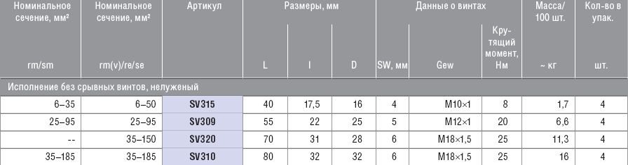 Винтовые соединители с перегородкой, нелуженые, без срывных винтов, 35–150 мм KLAUKE SV320