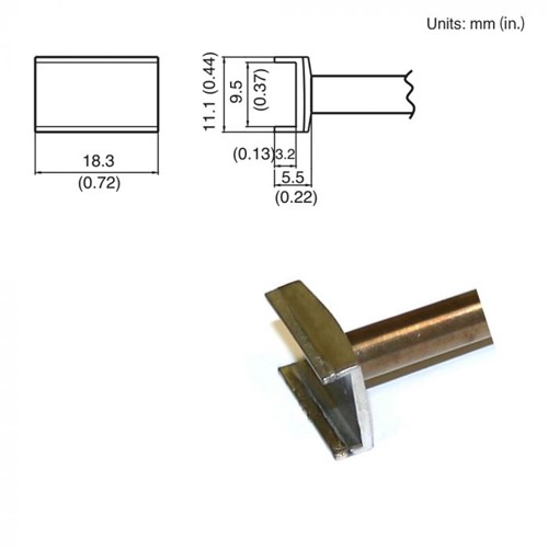 Профиль: призма с пропилом, ширина 18,3 мм, высота 11,1 мм, длина рабочей части 5,5 мм; ширина пропила 9,5 мм, глубина пропила 3,2 мм.