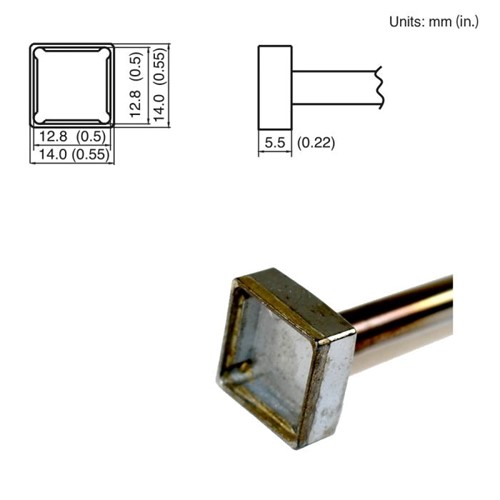 Профиль: призма с угловыми технологическими каналами, ширина внешней стенки 14 мм, ширина внутренней стенки 12,8 мм, высота внешней стенки 14 мм, высота внутренней стенки 12,8 мм, длина рабочей части 5,5 мм.