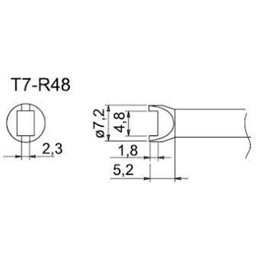 Профиль: стамеска с прямоугольным пропилом, ширина 7,2 мм, толщина 2,3 мм, высота 5,2 мм; ширина пропила 4,8 мм, глубина пропила 1,8 мм.