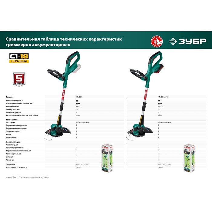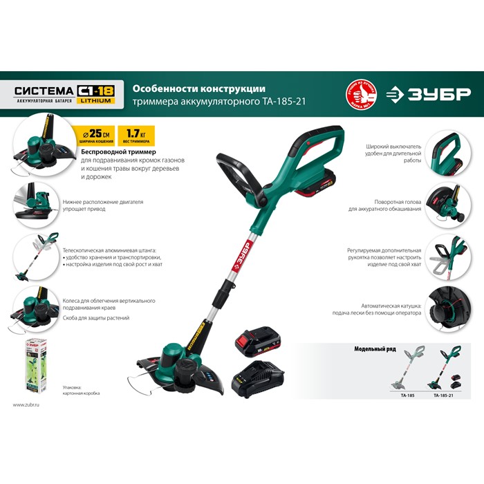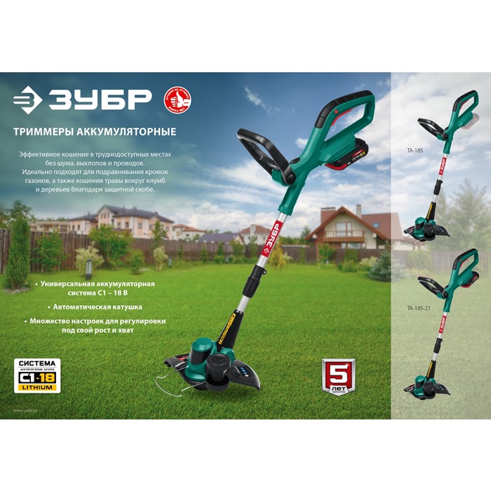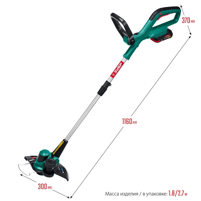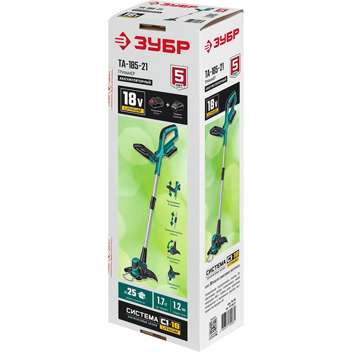Аккумуляторный триммер, 1 АКБ (2 Ач)ТА-185-21 Зубр