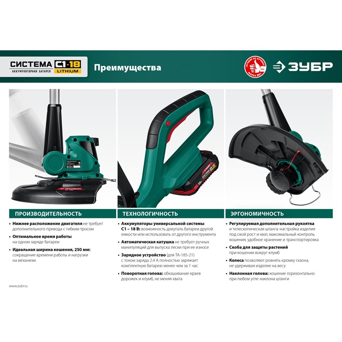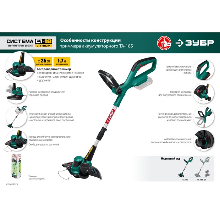 Аккумуляторный триммер, без АКБТА-185 Зубр