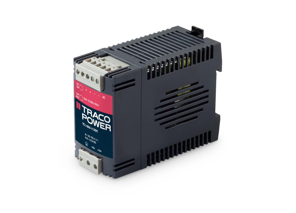 In the TCL range of DIN-rail power supplies are 6 models for DC input voltage available. The wide input ranges of 9.5–18 VDC resp. 18–75 VDC means these models can be operated from all popular DC supply voltage systems. With tightly regulated output voltage these DC/DC converters provide a reliable power source for sensitive loads in industrial process controls, factory automation and other equipment exposed to a critical industrial environment. Further applications for these converters are isolation of a specific load or refreshing the 24 V bus voltage. Easy installation is provided with snap-on mounting on DIN-rails and detachable screw terminal block.