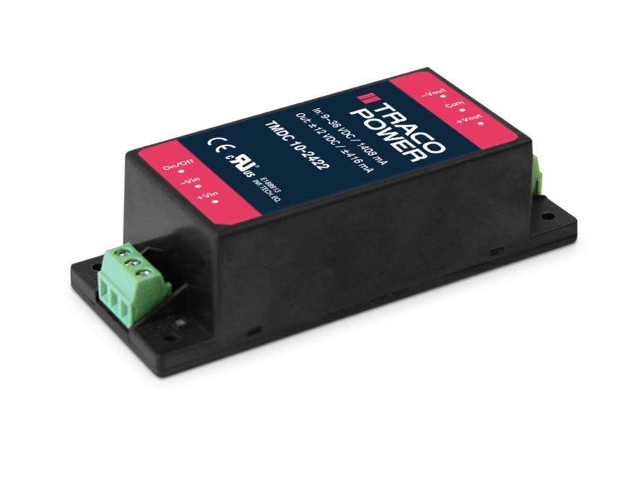 The TMDC 10 series (10 Watt) is the latest additions to Traco Power's existing TMDC line of Industrial DC/DC off-board modules. Equipped with integrated filters which limit conducted and radiated emissions (EN 55032 class A) but also increase the modules EMC immunity (EN 55035), this series is suitable for many harsh industrial applications which require increased EMC and isolation (3000 VDC I/O-isolation) capabilities.
