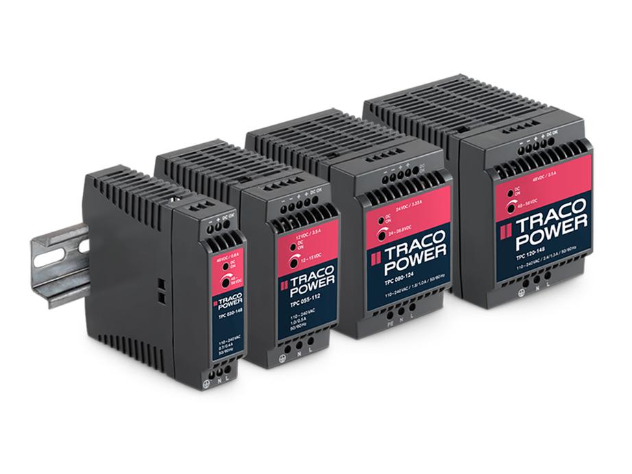 The TRACOPOWER TPC series is a family of lightweight DIN-rail power supplies with an excellent price/performance ratio. They consume sparse standby power, and operate with high efficiency to comply with the requirements of the European Ecodesign directive. They have universal input of 85-264VAC or 90-375VDC and are designed for class I operation in industrial and residential environments. With the optional active current sharing redundancy module, these power supplies provide a very reliable true redundant DC supply. For further details see page 3.