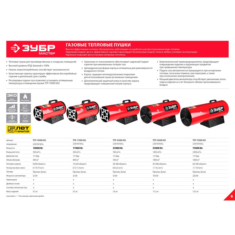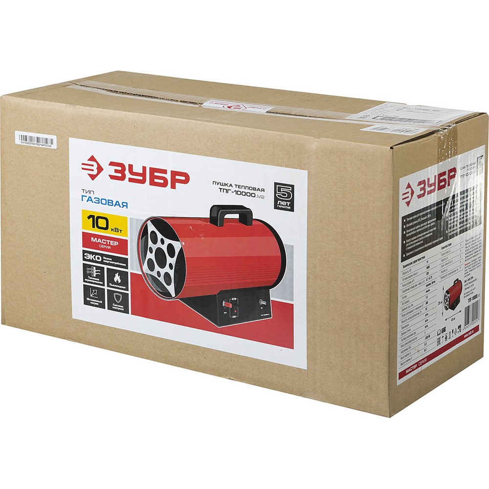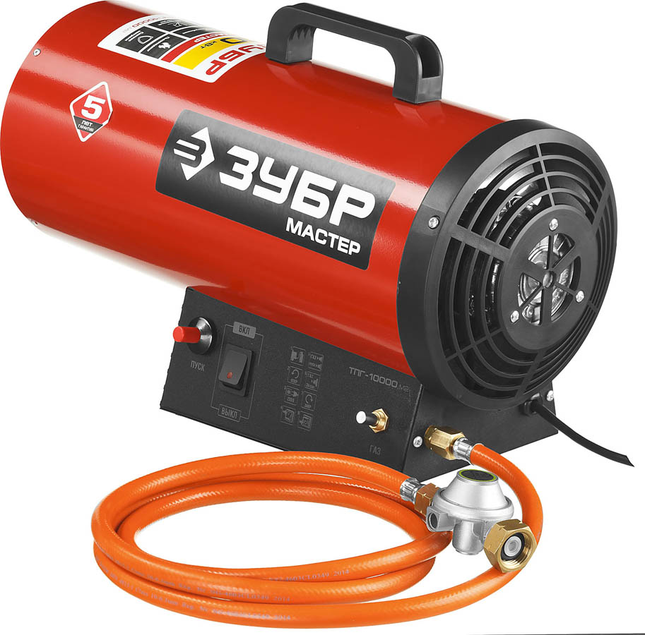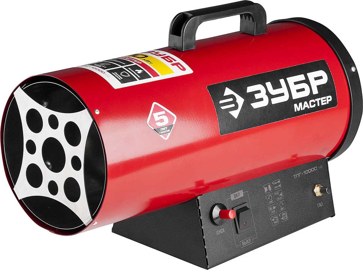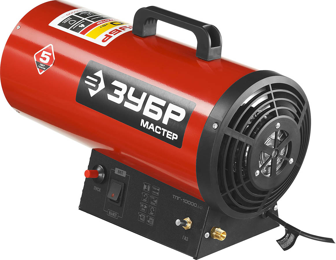 ЗУБР 10 кВт, 330 м.куб/час, 0,75 кг/ч, газовая тепловая пушка ТПГ-10000_М2, МАСТЕР