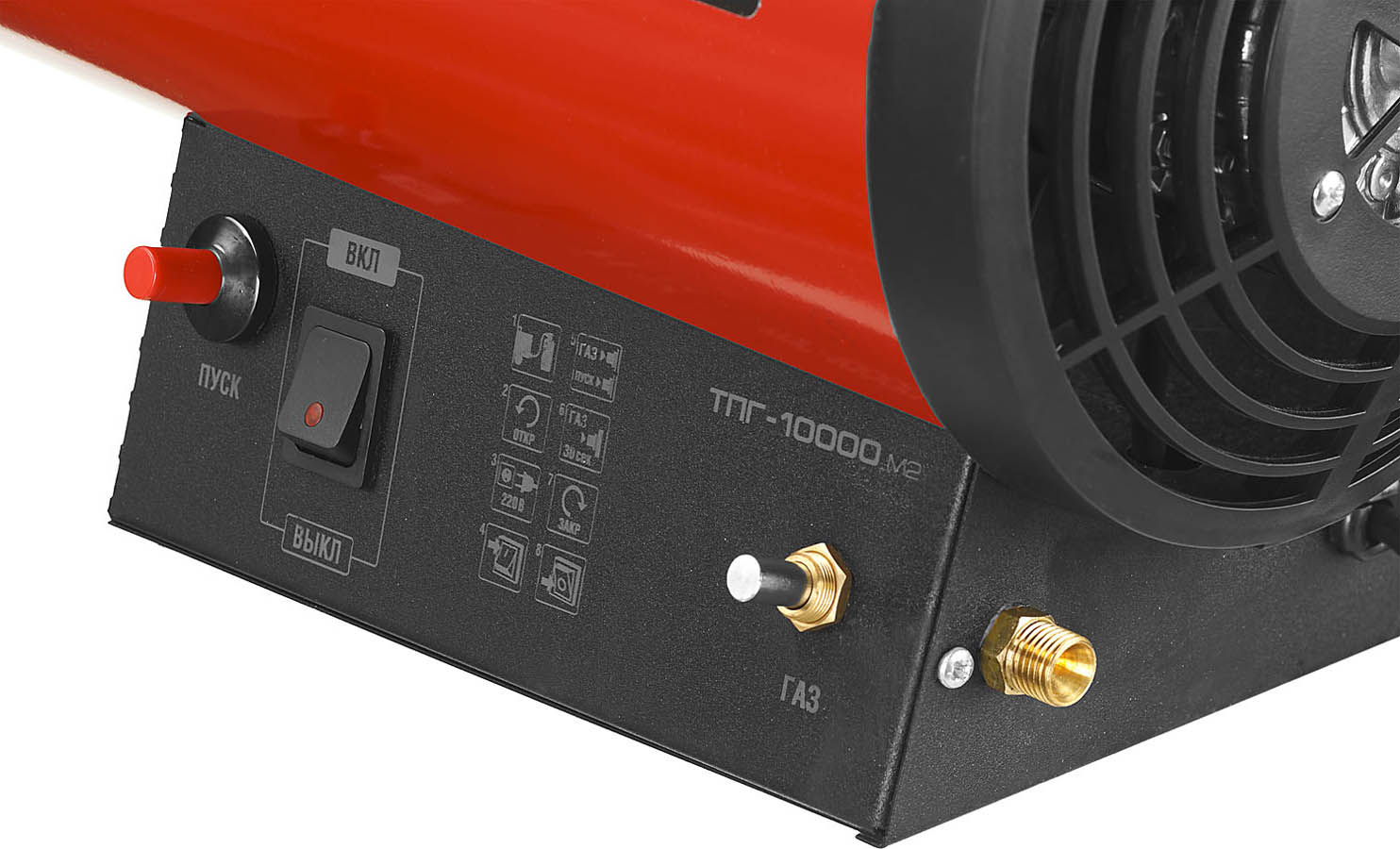 Газовая тепловая пушка ЗУБР ТПГ-10000_М2, предназначена для обогрева и сушки складских и производственных помещений большой площади, а так же идеально подходит для установки натяжных потолков. Высокая тепловая мощность благодаря энергоемкому рабочему телу (газ), высокий уровень КПД, близкий к 100%, низкое энергопотребление. Мощный двигатель вентилятора способствует увеличению теплоотдачи за счет большого объема прокачиваемого воздуха. Регулировка подачи газа позволяет установить оптимальную температуру в помещении. Зажигание от пьезоэлемента обеспечивает надежный поджиг при минимальных потерях газа. Цилиндрическая форма корпуса оптимальна для равномерности воздушного потока. Автоматическое прекращение подачи газа при исчерпании запасов топлива, в случае погасания пламени, при перегреве, а также при отключении электропитания. Дополнительный защитный кожух по всей поверхности камеры сгорания в качестве экрана предотвращает повышенный нагрев корпуса.