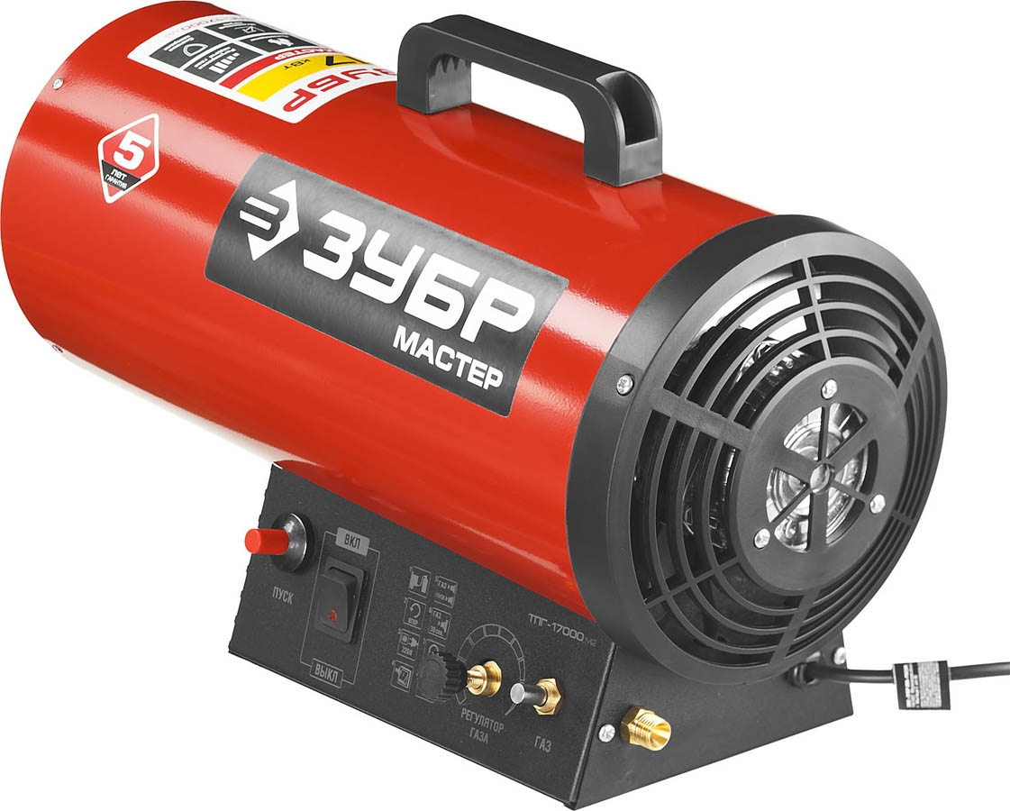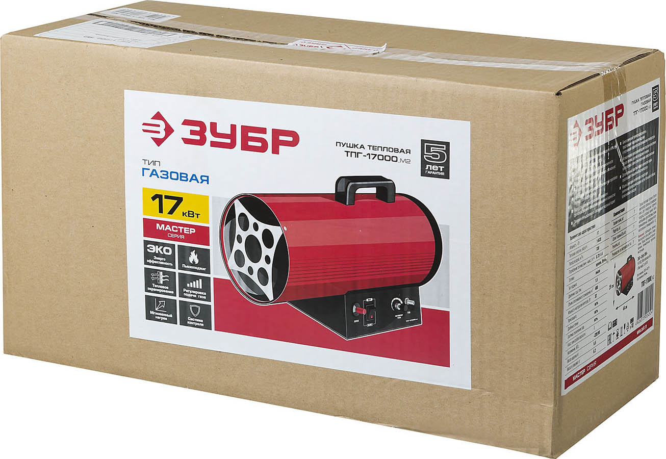 ЗУБР 17 кВт, 330 м.куб/час, 1,4 кг/ч, газовая тепловая пушка ТПГ-17000_М2, МАСТЕР