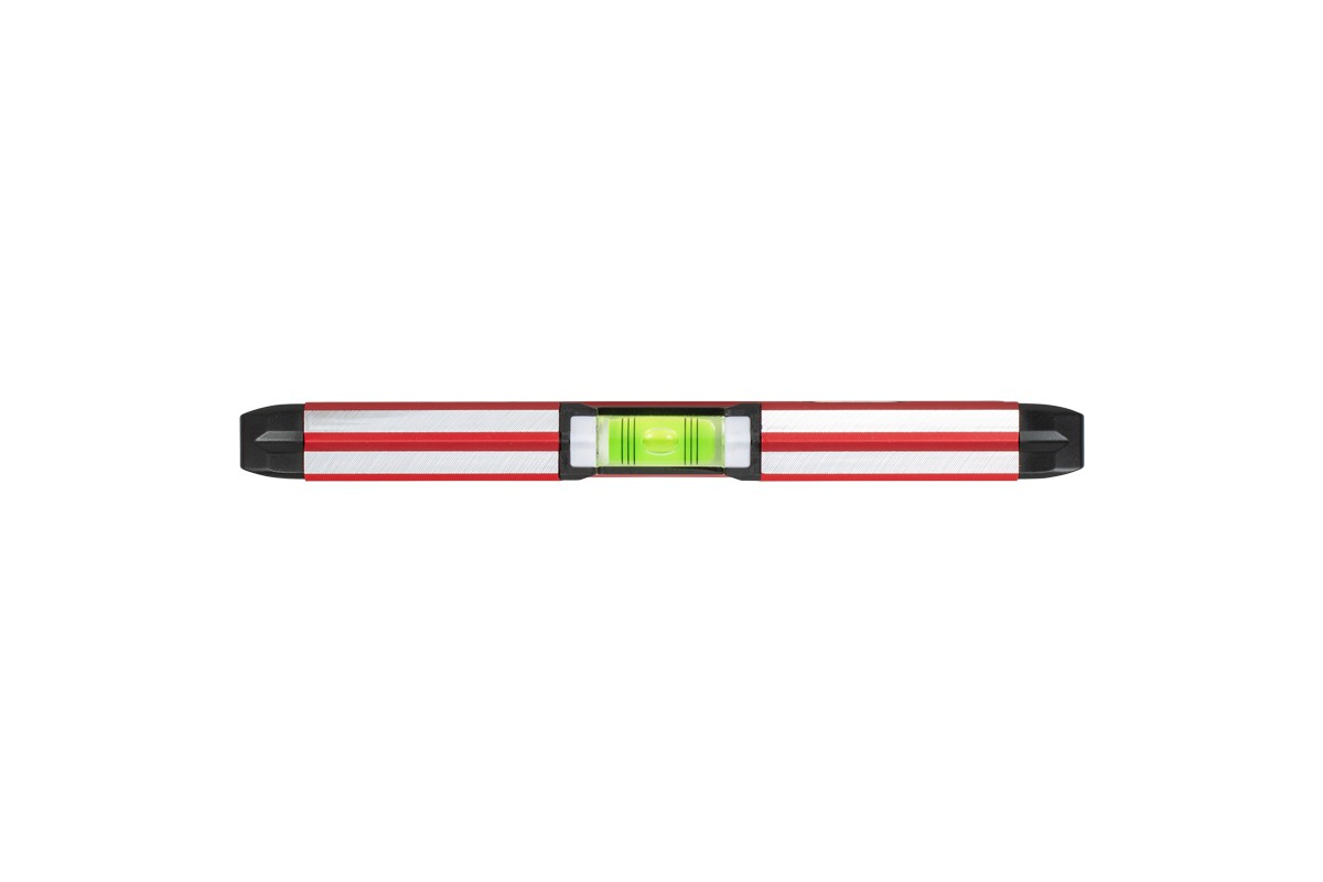 Длина инструмента в 250 мм позволяет легко использовать его одной рукой. Еще больше упрощает задачу наличие встроенного магнита для крепления на любой металлической поверхности. Имеется 3 ампулы: для горизонтального, вертикального положения и проверки по диагонали.