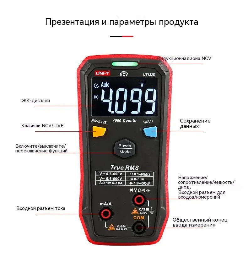 - Автоматическая идентификация входного сигнала (напряжение, сопротивление, ток)